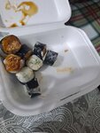 Заказывали раньше, остались очень недовольны,думали может лучше стало обслуживание и вкус. Ошиблись. Заказали на самовывоз,обещали 25-30мин,в итоге пришли забирать пришлось ещё ждать,спустя 55мин забрали заказ😖заказывали сет горячих роллов,пришли домой через 3 мин после того как забрали заказ,вообщем роллы чуть теплые😑на вкус норм,не более,заказывать больше не планируем🚫