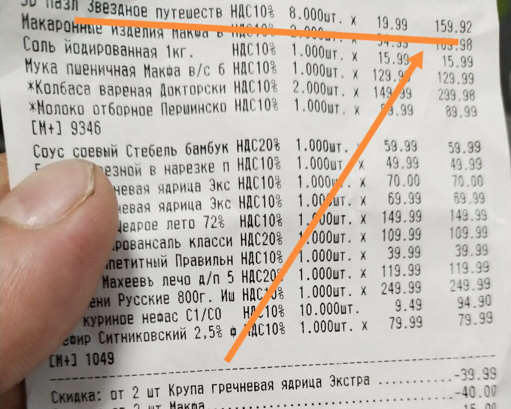 Накидали лишних 159 рублей. Я этой позиции вообще не брал. Откуда эти 8 игрушек. Всегда смотрю чеки после покупки с этого магазина. Частенько что то не то. Мы не богатая семья. 4 детей.каждая копейка на счету. Даже пакеты свои таскаем чтобы не покупать и сэкономить 8-10 рублей. Стараемся брать по акции продукты. И тут проблема. Например, берёшь что то, что стоило 350,а сейчас по скидке 250.а по чеку смотришь продали за 350. Может это не вина персонала а руководства я не знаю. Может из-за малого персонала не успевают ценники менять. Продавцы вежливые. Продавцы молодцы.