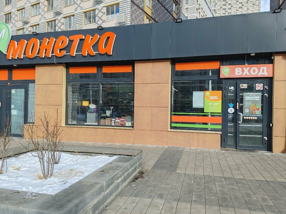 Зашел в данную Монетку взять продукты. Магазин ужасно маленький и узкий, ассортимент крайне смущает. Персонал 2 возрастные бабушки на весь магазин, пришлось стоять возле кассы самообслуживания 15 минут и ждать подтверждения до того момента, пока сам не попросил встать из-за кассы и подойти. До сих пор не понимаю как у магазины 4 звезды, лучше заходите в Пятерочку по соседству. Не советую, если только по мелочи зайти хлеб купить.