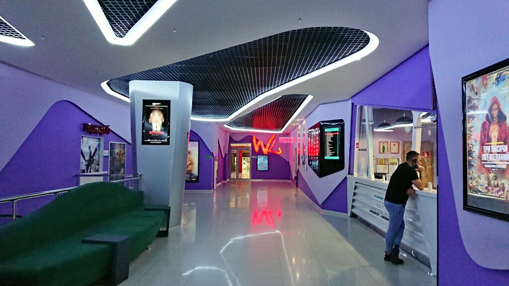 Хороший кинотеатр, много залов , везде чисто , кресла очень удобные . Вежливый персонал. Приходили на сеанс ночью , были одни в зале, нам это понравилось. Качество экрана и звука просто шик. Находится в ТЦ, легко нашли это место , хотя приезжие .