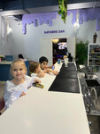 Людей мало, место новое, чистое. Есть няня, которая присматривает за всеми детьми. Но, есть один косяк: роллы надо ждать 40 мин одну порцию (это при двух(включая наш) занятых столах.. Было ощущение, что они сами их где-то заказали и тоже ждали..