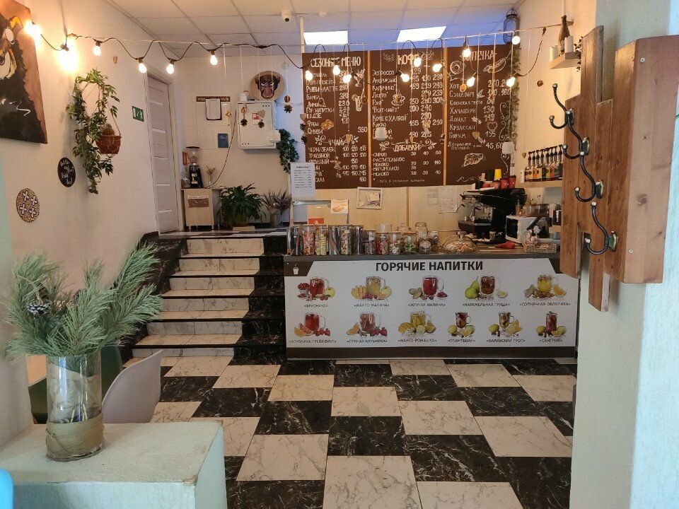 Очень приятная кофейня. Не смотря на место расположения, где очень малолюдно. Внутри все меню расписано, все понятно. Девушка-бариста оооочень доброжелательна и вежлива! Наблюдала ее заказ, который сделали школьники, обращение с ними на ВЫ, сейчас этого не встретишь , вызывает большое уважение к сотруднику!!! Внутри кофейни чисто, все продукты свежие, и мой капучино был очень вкусным!!!