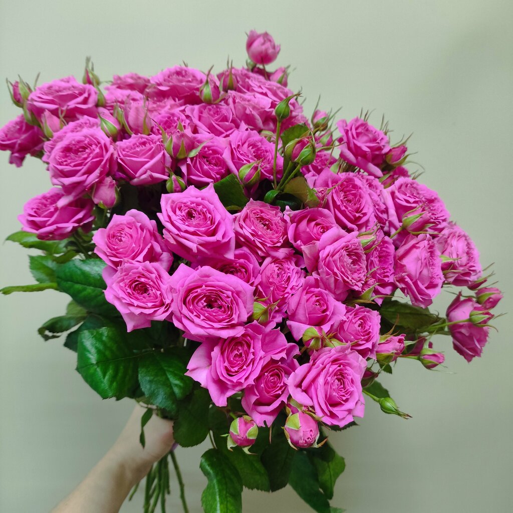 Букет из 5 кустовых роз и гипсофилы. Мы возим розы с премиум плантаций напрямую от поставщика. Поэтому наши розы стоят долго и имеют пушистые и крупный ветки.