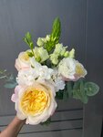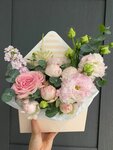 Авторский букет в розовой гамме.Так как в букете могут присутствовать сезонные цветы, состав может быть изменен флористом с учетом этих особенностей!Транспортировочная коробка, рекомендация по уходу и средство для продления жизни цветов в подарок.