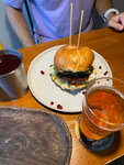 Давно хотела побывать в этом месте и очень рада, что зашла. Пробовала бургер с брусникой, вкусно, сочно, необычно, совершенно не банально и отличается от всех бургеров, которые я пробовала до. Единственное, мне показалось, что уж слишком напичкан он всем )) много-много вкусовых сочетаний. Очень хорошее, человеческое обслуживание! И без фамильярности, но и без пофигизма. Очень быстро приготовили!!! За это прям отдельный огромный плюс 🙏🏻 Из минусов отметила бы не очень хорошую вентиляцию на втором этаже, показалось душновато. А так в целом это место, в которое буду возвращаться и пробовать. Спасибо!
