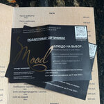 В этом потрясающем месте всё замечательно,еда оченьььь вкусная 😋, хороший выбор в меню - 7 кухонь мира. Бар порадовал, особенно фирменный коктейль MOOD. Обслуживание на высшем уровне,музыка,атмосферное место. Всем советую его посетить😊. Проводят множество мероприятий. Подойдёт как для шумной компании так и для романтического ужина.