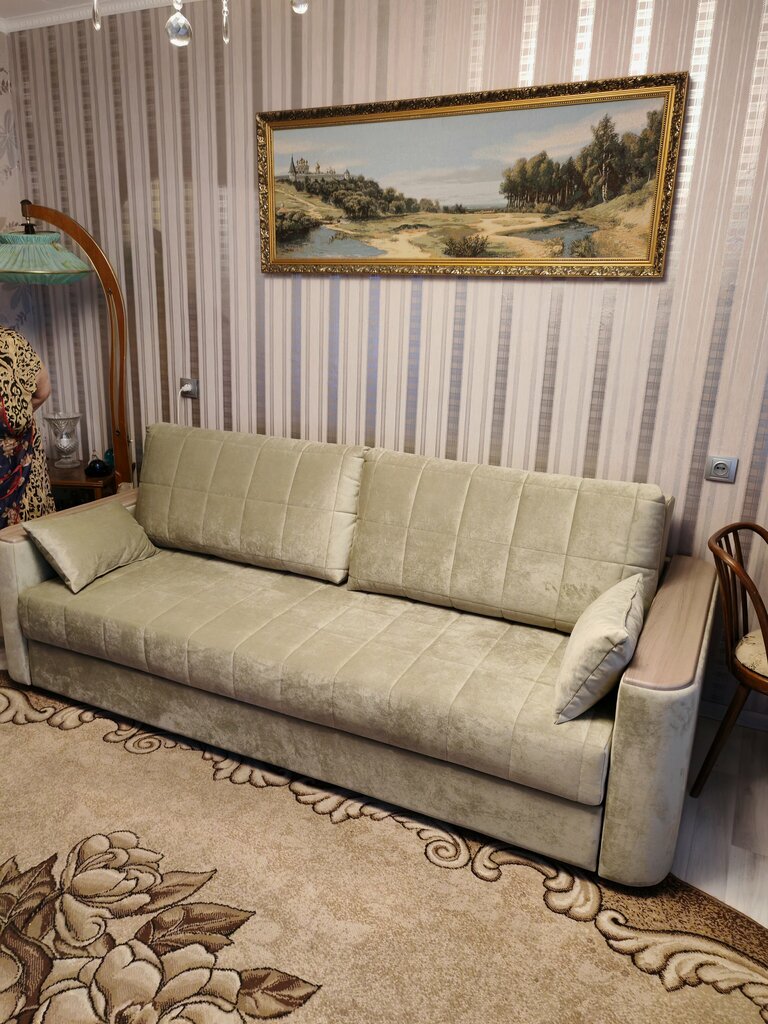 Расположение салона очень удобное,буквально на входе,не надо ничего искать. Профессиональный менеджер Наталья помогла с выбором модели,ткани,помогла сэкономить,что приятно мне как покупателю. Цены приятные,условия доставки ,сборки ремонта тоже. Остались довольны посещением и консультацией, оформили покупку.