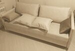 Приобрели диван прямой moon 171 светло-бежевого цвета. В эксплуатации месяц. Диван отличный, в меру жёсткий, спать удобно. Идеальный компактный размер для кухни-гостиной. Сзади также имеет добротный вид, что позволяет ставить его не только вплотную к стене, но и осуществлять зонирование комнаты. В комплекте с диваном идут 6 подушек. Ткань прочная, несмотря на светлый тон, не маркая. Это уже не первый товар, приобретенный в moon. Есть опыт использования двуспальных кроватей с подъёмным механизмом, матрасов и небольшого компактного раскладного диванчика. Вся мебель качественная, ни разу ничего не ремонтировали. Обивка кошке не понравилась, все цело.