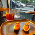 Это коктельный бар на набережной. Атмосферное место. Для компании и побыть одному. Очень мягкий и ненавязчивый джаз придётся по вкусу многим. Ассортимент небольшой, но выбрать есть из чего. Брала коктейль cherry sbagliato - очень понравился, чуть сладкий и многогранный аромат. Хороший зелёный чай. Брускеты с лососем не троечку. Маленькие и на вкус не очень. Молодой официант очень старается. в зале чисто.