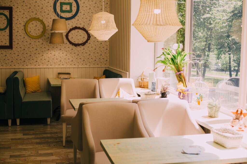 Милое детское кафе) Достаточно уютно, правда тесновато🤷‍♀️ Хожу туда из-за вкусных тортиков, очень нравится лавандовый с черникой и лимонным кремом, ещё малина-фисташка😋😋😋 Но и основательно поесть можно, достаточно большой выбор блюд. Неоднократно брала салат с кальмарами и тигровыми креветками (в нём добавлены кусочки манго - ну, ооочень вкусно!) А ещё брускета с грушей, сыром и беконом - необычно, красиво и отлично на вкус! Хочу выразить огромную благодарность официантке, которая нас обслуживала (06.10.2023), к сожалению не запомнила имя, за тортики!)))😉 Очень вежливая и внимательная девушка!