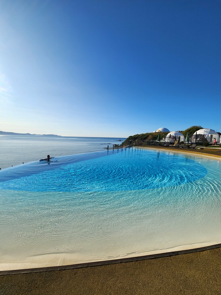 Где мы только не были, но ЗДЕСЬ понравилось больше всего. Виды на море шикарны. Стиль новый современный. Бассейн тоже новый, теплый...фото для девушек там - просто огонь. Из бассейна смотришь на Море... Утром просыпаешься в глемпинге...как в раю, т.к.в крыше окно... небо...облака🥰Первое "местечко", что мне, прям, ну очень понравилось. За Хаммам, отдельное спасибо. Класс. Рекомендую, однозначно.