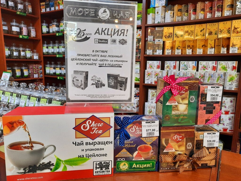 Замечательный магазин, точнее, сеть магазинов! Царит сказочная атмосфера! Всё ярко, красиво и со вкусом расставлены! Чаем напоят, посоветуют с выбором. От сувениров, шоколада до чайно-кофейной продукции можно преобрести в сети этих магазинов. Действительно "Море чая" - название говорит само за себя! Работают замечательные продавцы: вежливые, улыбчивые и приветливые! Желаю им процветания!