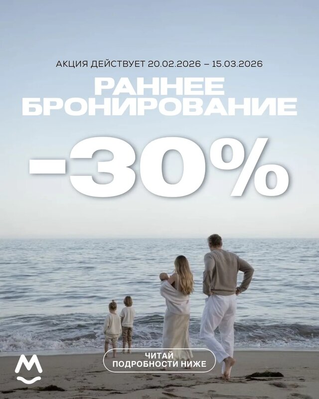 Раннее бронирование -30% Условия акции: ⁠скидка 30% минимальная продолжительность проживания от 1 ночи; период проживания с 29.05.2026 г. ...