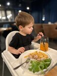 Зашли с ребёнком в ресторан случайно, искали тихое, спокойное место для обеда после посещения аквапарка. Мне понравился интерьер - очень стильное оформление, чудесный вид из окна, ненавязчивая музыка. Персонал вежливый и внимательный, сразу принесли детский стульчик, есть детское меню. Еда вкусная, подача на высоте, вернёмся сюда не раз!Думаю отметить здесь какое-нибудь семейное торжество🌸
