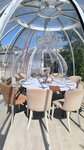 Снимали беседку Купол для корпоратива. Красиво очень. Большой купол, места достаточно. Официанты вежливые. Подача очень красивая. Еда вкусная. Фирменный десерт - бомба. Выдали музыкальную колонку. за что сняла звезды:1. выбор блюд очень маленький. Даже пиццы простой с мясом нет. то мяса нет, то грибы еще. Хорошо, что нам согласились сделать пол пиццы без грибов. Но наполненность уже не та. 2. Беседки стоят почти на берегу. Нет, не на пляже. Но вокруг постоянно толпятся прохожие. То селфи, то просто походить, то в кресло сесть. Бабулечки загорают прислонившись спиной к куполу. 3. туалет в ресторане, всего 2, один из которых не работал. Очередь собрал. Но, не смотря на эти минусы, однозначно рекомендую ресторан. Просто иметь ввиду. Кальмар по-сицилийски очень вкусный. Но цены не демократичные. Рекомендую именно беседку Купол. За атмосферность.