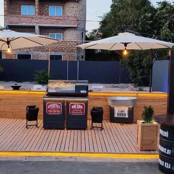Очень вкусные морепродукты и холодное пиво по адекватной цене) Работают долго, так что даже припозднившись вечером можно успеть купить креветок и мидий) жаль только что нет у них большого павильона чтобы можно было комфортно посидеть.