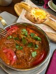 Красивое место чтоит новогодняя атмосфера. Официант молодец: помог выбрать блюдо. Взяли салат Гарни, очень вкусный, мясо нежное и ароматное будто с угля. Себе взяла Чашашули с говядиной, скажу так для холодных вечеров самое то, макая с хачапури. Супруг взял Хурджин с говядиной видимо и мясо для него был суховат.