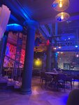 Классный бар, вкусная еда, большой выбор алкоголя, кальян и концепция «танцы на барной стойке». Стильный современный интерьер, по цветам напоминает ирландский паб. В меню закуски, салаты, мясо и морепродукты. Понравился стейк Паук, мидии в соусе блю чиз - очень мало мяса в них, особо не наешься, соус вкусный. Большой выбор коктейлей - на любой вкус, с красивой подачей. Дымный кальян, делают хорошо. Обслуживание быстрое, официант был рядом, своевременно забирал посуду, посоветовал что заказать. Туалет чистый (общий м/ж). Музыка отличная. С 22:00 музыку ставит диджей, но и с 21 до 22 уже включаются огни и в ресторане загорается атмосфера ночного клуба. Все отлично, удовольствие получили, место рекомендую!