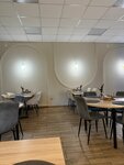 Приятное место. Следуя трендам Москвы, в интерьере ничего лишнего- однотонные стены, аккуратные светильники, мягкий приглушённый свет. Нет бардака или излишества на столах. Милая приятная официантка ответила на вопросы и оперативно принесла заказ. Есть внимание к деталям и мелочам(ватные палочки и диски в туалете). Электронное мусорное ведро, зелень на столах. Минажи аккуратно выглядят. Меню на любой вкус, есть комплексные обеды. Из минусов: На входной двери лист А4 с графиком работы- выглядит некрасиво. Войдя внутрь, меня никто не встретил и не поздоровался со мной. В ближнем к выходу зале, пусто и не хватает мебели Кофе из кофейного автомата. В меню прописано, что десерт от некой Кристины Самойленко(кто это? хаха) Все эти минусы создали впечатление, что кафе открылось совсем недавно и только делает робкие шажки по завоеванию и привлечению своего гостя(хотя на самом деле проект существует уже немало времени) Итог: Это место, как будто хочет в столицу, стремиться к этому уровню. Хочу пожелать удачи персоналу и владельцам, и надеюсь на расширение и увеличение потока гостей! (5 звёзд не смог поставить. Вам есть к чему стремиться и расти)