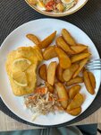 Ставлю заведению твердую 3+ Еда по вкусу как в столовой. Заказали судака и форель. Накрыли зачем-то сырным покрывалом. Зачем портить вкус рыбы дешевым сыром, не понятно. Ещё брали лохикейто. Жидковато. Картофель нарезан как попало, огромными кусками. Зато рыбка плавает малюсенькие кусочки разных видов. И попался сюрприз в виде кости. Обслуживание быстрое, су чистый. Задала вопрос про какао, официант рекомендовал обратиться отдельно на бар)))) очень странно. Заведение просторное, находится во дворах жилых домов, рядом со следственным комитетом)) когда приехали по навигации, даже удивились Чек на 2х с 1 американо и всем перечисленным составил 2200р