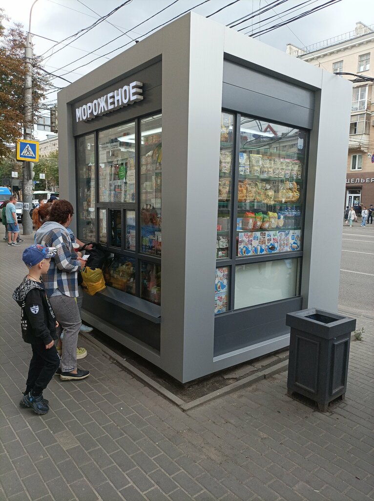 Киоск интересный, мороженого выбор большой. Начиная от простого и пошло с разными начинками. Одного фруктового видов восемь не говоря уже о пломбира. Вообщем выбор большой мне понравилось. Киоск чистый как и остальные киоски по городу. Мороженое очень вкусное советую. Всем удачи.