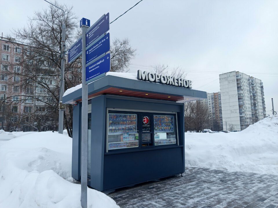 Киоск мороженого на Новоясеневском проспекте примечателен не только богатым ассортиментом холодного лакомства, но и качеством обслуживания. Продавец любезно проинформирует вас о характеристиках любого вида мороженого, поможет сориентироваться в море аппетитных изображений и названий продукта и определиться с выбором. Приятно, когда нехитрая покупка может обернуться удовольствием не только гастрономическим, но и эстетическим.