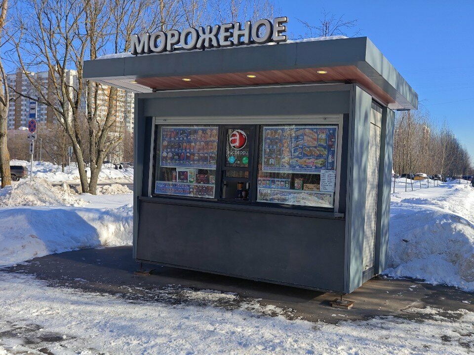 Цена на мороженое гораздо выше, чем в ближайших магазинах. Не пользуемся услугами этого киоска. Расположение киоска считаю не совсем удачным, рядом с автобусной остановкой. Возможно, жители близлежащего дома являются и покупателями киоска, но не пассажиры автобуса, которые едут в основном до ближайшей станции метро.