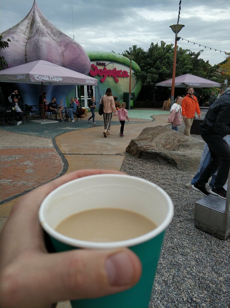 Зефирка. Вафли и ложки закончились в первый день открытия парка. Кофе хорошее, картошка на палочке тоже