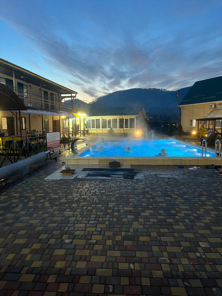 До сих пор каждый день вспоминаем чудесный отдых в Адыгее и данном отеле! Особенно хочется поблагодарить повара, еда потрясная! Домик уютный, не маленький, отдыхали семьёй, всем места хватило. Возле дома мангал, жарили пару раз шашлык, Бассейн всегда тёплый, очень комфортно было в дождь и вечером купаться вместе с детьми. Территория ухоженная. Но, хочу отметить минусы много мух в домике ( спасали купленные липкие ленты ) , плохая детская площадка ( требует покраски, починки) . Магазин в 20 минут пешком в гору , приходилось ездить на авто. Но расположение отеля очень удачное, есть куда прогуляться сходить и до разных достопримечательностей недалеко ехать. О самой Адыгее говорить не буду, сказочное место! В целом хочется вернуться ещё не раз! Спасибо!