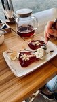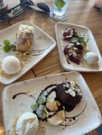 Один только вид на море со столиков в ресторане подкупает. Далее изучив меню, могу сказать: Не раздули, есть что покушать, выпить. Мы с заказали ризотто с морепродуктами и пасту с тунцом. Мой ризотто был на высшем уровне, было очень вкусно и очень сытно (самое то на обед в будний день). Приятным бонусом была скидка 25% в обеденного время с 12:00 до 16:00. Паста была вкусная, но на вкус Жени немного кислила. Попить мы заказали чай, так как на улице было достаточно ветрено, самое то согреться. На десерт нам посоветовала любезная официантка Евгения грушу в вине с мороженным из горгонзоллы. Очень не обычное сочетание вкусов. Было очень вкусно и не приторно сладко. Советую.