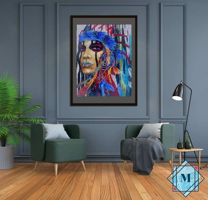 Интерьерная картина из комбинации стеклянной мозаики и художественного стекла