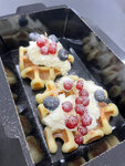 Очень быстро готовят пиццу. Тесто тонкое и очень вкусное. А не как пирог с майонезом, как часто бывает. Пробовали пиццу с овощами и грибную. Грибная топ! Есть акция 5 пицц по 2000, довольно выгодно планируем в будущем ещё заказывать. Вафли средние, очень маленькая порция.