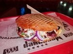 Внутри заведение разделено на несколько частей, заказываешь, потом ожидаешь готовность (на мониторе). Я заказала шаурму с говядиной в пите. Говядина пережарена, все испортил соус, похожий на томатный. Но наелась) Пиво заказала обычное в бутылке. Кроме меня никого не было, рядом мониторы со спортивными событиями, похоже на паб. Возможно, именно моя позиция оказалась неудачной, другое не пробовала.
