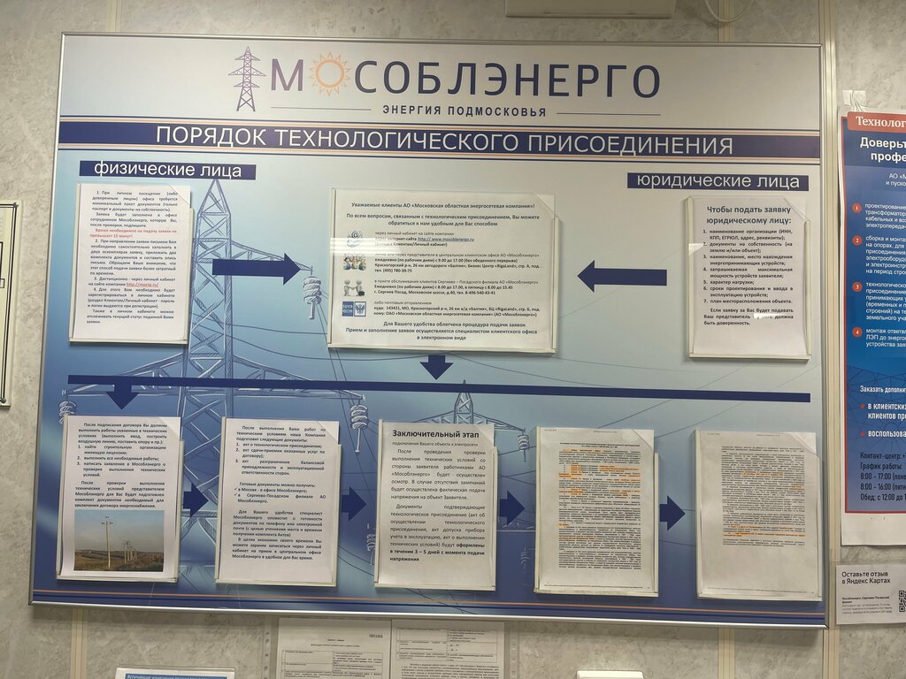 Хочу поделиться искренним впечатлением от работы Сергиево-Посадского филиала Мособлэнерго. Обращение в клиентский отдел превзошло все ожидания — здесь не просто отвечают на вопросы, а действительно помогают разобраться в каждом нюансе подключения света на участок. Чувствуется, что каждый сотрудник не просто выполняет свою работу, а вкладывает сердце и душу в общение, делая процесс максимально понятным и быстрым. Удивляет, насколько слаженно работает команда, и это явно заслуга руководства — в лице директора, который умеет видеть и развивать профессиональные качества каждого. Редко встречаешь такой теплый и в то же время строго профессиональный подход в энергетической сфере. Это место, где клиенты не просто номера в очереди, а люди, которых ценят и понимают. Огромное спасибо за ваш труд и поддержку!