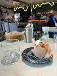 Очень атмосферное место:уютная обстановка, интересная и быстрая подача блюд,вкусовые качества которых превосходят все ожидания,вежливый персонал. Нас обслуживала Елена. Подробно рассказала о блюдах, помогла сделать выбор,предложила приобрести сувенирную продукцию. Приятным бонусом был небольшой презент от заведения. Обязательно вернёмся вновь. P.s. раф " Горы зовут" божественен)
