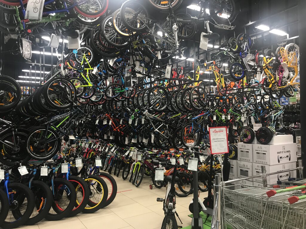 Большой выбор. Цены нормальные. Но можешь лишь присесть на велик - прокатиться нельзя. При этом велосипед относится к сложной технике и обменять его будет невозможно. Так что, лучше подобрать иной магазин.