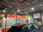 Полуразрушенный ангар. Одни ворота заклеены тентом, вторые еле открываются. По цене переобуваются в воздухе. Мойщик говорит одну сумму, владелец другую (дороже). Договорились. Через минуту подошел и сказал, что не надо мыть багажник, тут же владелец говорит, что без багажника и посчитал. Видать понятия «прям всё полностью» у нас оказались разными. Место максимально странное, не советую