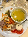 Недавно побывали в кафе, которое работает больше 30! Лет. Живем на Петроградке давно, но всё никак не было повода сюда заглянуть, а зря. Кухня австрийская, порции большие, ценник выше среднего. Если хотите попробовать новенького, советую салат «Нежный ангел»- куриное филе яблоки, апельсин, банан, невероятный белый соус, не смотря на странное сочетание, мне понравилось, всё вместе нежное сливочное с кислинкой, не тяжелое блюдо. Суп заказали Маульташен, бульон крутой, соленый, наваристый, с пельмешками, не классическими. Ну и шницель, есть 3 размера, маленький, средний и большой, на жареной картошечке с овощным салатом. Я заказывали классическое популярное блюдо в Австрии - Тафельшпиц, любимое блюдо императора Франца Иосифа I. Вареная телятина в бульоне с овощами. Бульон можно заказать отдельно. Советую сходить, попробовать и открыть что-то новое для себя.