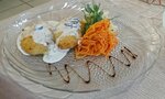 Отличное кафе! Красивый интерьер! Уютно, очень вкусно! Порции большие, сервировка красивая. Брали зразы картофельные - порция из 2-х штук, с гарниром из моркови по-корейски и квашеной капусты, украшения всё ростками гороха -очень достойно. Салат свекольный - вкусно и много. Гренки с чесноком вкусные. Приемлемая цена на чайник чая, большой выбор вкусов. Комплимент от заведения - вазочка со сладостями к чаю! Ходим не первый раз и всегда попадаем к официанту Максиму- всем довольны, спасибо.