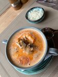 Выглядит ресторанчик красиво. Все аккуратно. Ризотто с белыми грибами невкусное- рис недоваренный и слишком соленое. Тыквенный суп нормальный, макароны с сыром трудно испортить, дочь не доела. Куриный бульон нормальный. Даже кофе на троечку. Соблазнилась красивеньким кафе на трассе)))) Хлебная лавка, думаю ,порадовала бы больше))