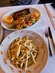 We were on Saturday evening, everything turned out to be free (although there was an iftar) . A quiet place, away from the loud streets, clean. The prices are average, 2,700 lire came out for two (2 salads, 2 hot and freshly squeezed), but the portions are huge and very tasty. The waiter speaks Russian, the atmosphere is friendly and welcoming. We will definitely come back again!