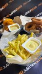 Картофель фри, чесночные гренки, куриные стрипсы, сырные палочки, острые куриные крылышки, охотничьи колбаски, соусы