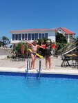 Очень красивое место. Бассейн-шикарный! Номера большие. Полностью оборудованы всем необходимым . Все современное. Хорошая столовая для приготовления пищи. Есть детская площадка. До моря очень близко. Более благоустроенный пляж находится подальше, но это не портит впечатление от моря. К дому и хозяевам претензий нет. Рядом автобусная остановка . На 3 можно доехать до центра. У кого автомобиль вообще без проблем. Кто пешком придется походить до магазинов. Или сделать заказ с доставкой. Рекомендую тем, кто устал от городской суеты и хочет просто отдохнуть в тихом месте.