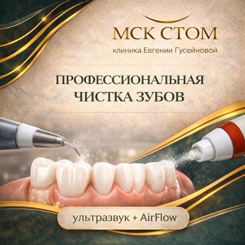 Профессиональная чистка зубов в Москве. Удаление налёта и зубного камня ультразвуком и AirFlow для здоровья зубов и дёсен.