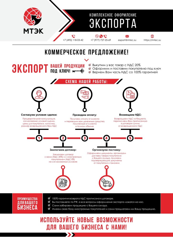 Хочу выразить благодарность сотрудникам МТЭК за плодотворное сотрудничество! Работа на экспорт для нас стала новой сферой, в которой не было опыта и знаний. Команда МТЭК провела сделку ответственно. Самостоятельно запросила документы с нашего покупателя, взяла на себя юридическую сторону вопроса. Помогли с оформлением доставки, заполнили все декларации для таможни. Все этапы сделки согласовывались с нами оперативно. Надеемся на дальнейшее плодотворное сотрудничество!