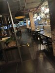 Когда то сеть была очень бюджетной. Сейчас цены стали намного выше, а порции намного меньше. Данное заведение находится в подвале здания. Места много. Зона раздачи большая. Приборы чистые. Обслуживание быстрое. По качеству еды - нормально. Порции откровенно небольшие. Можно найти вход по традиционной коровке