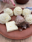 Ооооочень вкусный паровой хинкал! У них он называется даргинский. Подается с большим куском мяса и бульон. Полностью порцию не осилила, ждала даже недолго, минут 15. Очень сытно!