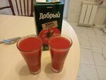 Мой непривзятый отзыв про сок томатный "Добрый". По факту это томатный нектар, что производители и указывают. Но это так мелко написано и на обратной стороне, что явственно указывает на уловку изготовителя. Попробовав нектар я ощутил приятную мякоть и дозированность соли. Казалось, что только недавно это были свежие помидоры, такое создалось ощущение. Теперь о фактах. Нектар произведен из томатной пасты.Доля сока 85%. Да,да, результат переработки, но при этом отлично воспринимается на вкус! Нектар рекомендован детям с 3 лет, что примерно соответствует, во всяком случае после употребления нет изжоги и других неприятных моментов. Теперь о цене. Все хорошо и нектар вроде приличный, кроме цены. 198₽ за пакет из 2 литров дороговато. Цена из магазина "Красное и Белое" Москва, ул Белобородова, 37. При желании можно купить и дешевле, но у другого производителя. За это снята одна звезда из 5. В целом нектар неплох, но цена снижает желание его покупать.