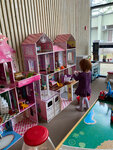 Уютное заведение. Пришли сюда из-за детской зоны. Она оказалась платная. Но недорогая 350 руб/час и очень классная . Батуты, сухой бассейн, горка- замок , несколько кукольных домиков, конструктор и ещё много чего. Детей не оторвать. Для родителей есть убтный диванчик для ожидания. Заказали по детскому меню , порции хорошие и все было вкусно. Единственное не подают воду в стаканах только бутилированную , но это видимо везде здесь так, надо же поднимать продажи.