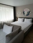 Останавливались в отеле в конце июля на 1 ночь. Оформление отеля современное, номера уютные. К минусам по порядку. С нас никак не могли взять оплату, банковский терминал отказывался работать, получилось только с 3 раза и то уже после того, как мы заселились в номер и сходили поужинать в ресторан. С wi-fi вообще непонятно, телефон мужа смогли к нему подключить, а мой так и не получилось. В номере стояла колонка Алиса, которая так и не заработала, возможно тоже из-за непоняток с wi-fi. Кондиционер направлен на одну из кроватей, даже на самом маленьком режиме сильно дуло, пришлось колхозить полотенцами, чтобы так сильно не дуло. При этом окно открыть - идея плохая из-за отсутствия москитной сетки на них. За 5 минут открытого окна налетело всякой живности. Из плюсов могу отметить, что кровати удобные, подушки тоже, в ванной чисто, халаты, полотенца имеются. Также в номере были приветственные открытка и мини калачи (вкусные), чай, кофе, вода.